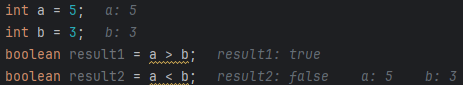 boolean result1 = a > b;
