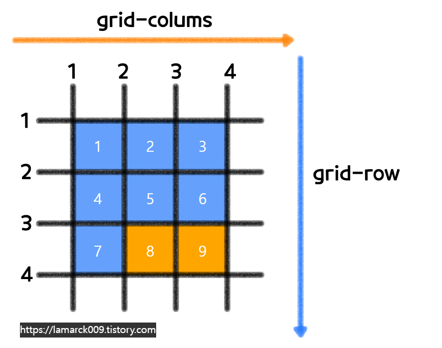 - 그리드 아이템의 열 시작 위치를 지정합니다.