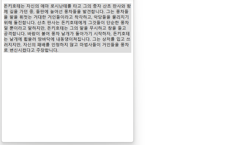 바람이 불어 풍차 날개가 돌아가기 시작하자, 돈키호테는 날개에 휩쓸려 땅바닥에 내동댕이쳐집니다. 그는 상처를 입고 쓰러지지만, 자신의 패배를 인정하지 않고 마법사들이 거인들을 풍차로 변신시켰다고 주장합니다.